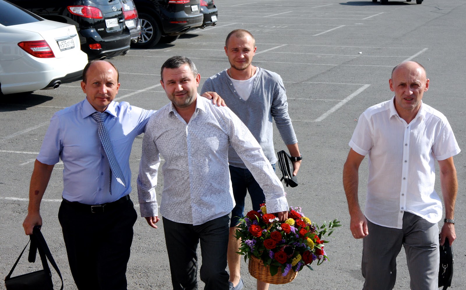 Это мой дорогой (слева) идет в обнимку с Сан Санычем (свидетелем на нашей первой свадьбе)